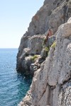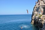 Since one of the themes of my trip is “Getting Out of Your Comfort Zone” I decided to take advantage of some of the unique opportunities that Santorini had to offer.  Like cliff jumping into the Mediterranean (see pics below), hiking an active volcano, and riding a donkey up from the old port to watch the world famous sunset, just to name a few.