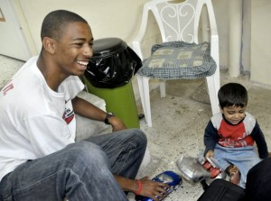 The first group was a community of refugees from Somalia who are literally stuck between a rock and a hard place.  They were forced to flee their war-torn country and are now stuck in Greece where they face hate crimes and threats against them almost daily from radical groups of Greeks.  But our group of 42 students was able to give them a little bit of hope.  We cleaned up their Somali Community Center and brought a little love into their lives.  One of our students talked about the experience on the program’s blog:
